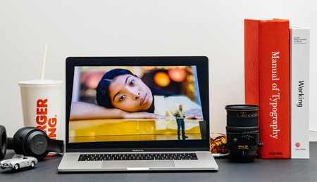 London - September 13, 2018: Apple Computers internet website on 15 inch 2018 MacBook Retina in room environment showcasing iPhone Xs Max R Keynote in Cupertino aperture setting on photo