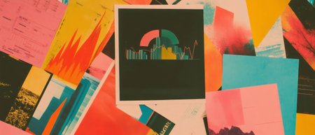 Collage of growth metrics and office themes showcasing a blend of playful and professional design