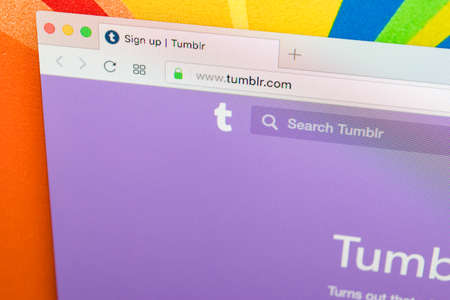 Sankt-Petersburg, Russia, January 11, 2018: Apple iMac with Tumblr homepage on monitor screen. Homepage of Tumblr.com on PC computer. Tumblr is microblogging and social networking service.