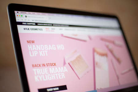 BELGRADE, SERBIA - MARCH 9, 2020: Kylie Cosmetics web site on computer screen. It is an American cosmetics company founded by Kylie Jenner founded at 2015.