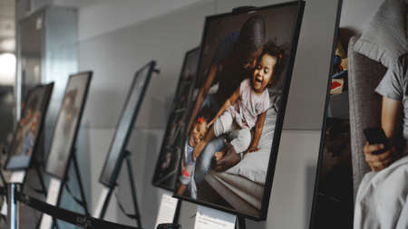September 5, 2019 Ukraine, Boryspil Airport - Photo exhibition Swedish Fathers - Creative photos about fathers and children