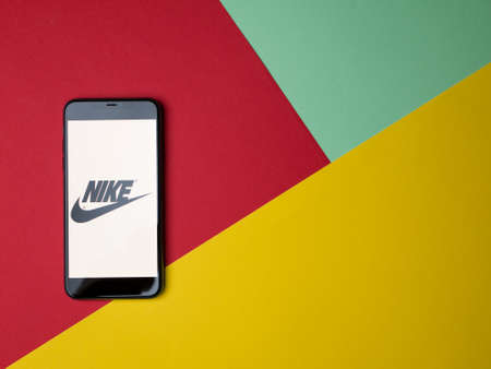 USA - May, 2020; Nike Iphone Application Screen on colored paper background. Nike is an American multinational corporation. #Nike