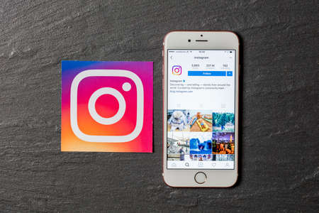 OXFORD, UK, DEC 5 2016: Smartphone shows the instagram app with instagram logos