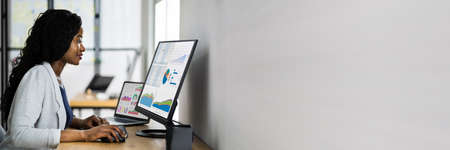 Cropped image of silver laptop on the table while long hair designer use it for her work.