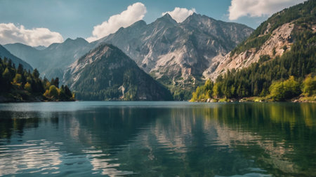 panoramic view of alpine lake in the mountains, Austria