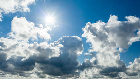 blue clouds with sun large clouds background. concept weather heaven
