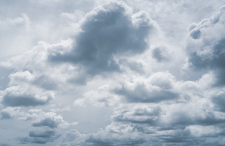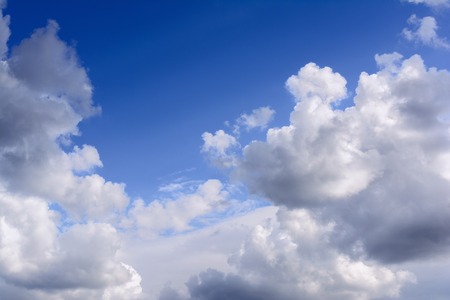 Clouds, close up view on a fluffy cumulus before storm. Background
