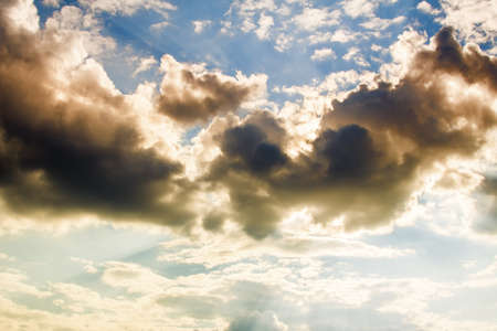Beautiful fluffy clouds in the sky. Nature background. Toned.