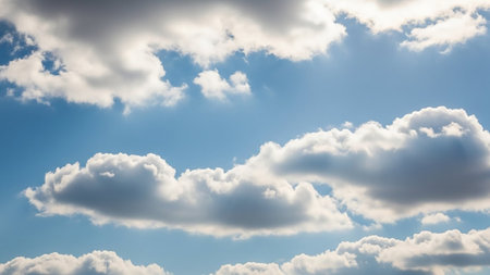AI Generated. Fluffy white clouds over rich blue sky create soft and serene atmosphere