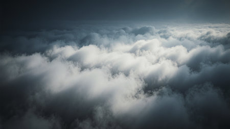 A tranquil scene unfolds as soft, billowy clouds stretch across the sky. The gentle play of light offers a calming ambiance, inviting thoughts of peace and reflection above the world below.