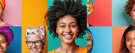 Diverse happy people smiling portraits on vibrant colorful backgrounds showing joy positivity inclusion happiness celebration multicultural community diversity concept.