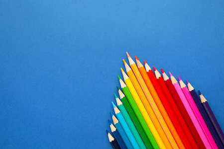 LGBT rainbow symbol made of square blocks in the middle of bright blue background