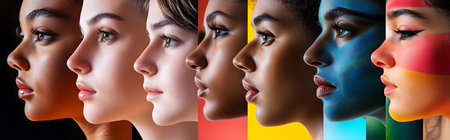 Multiracial lineup of women facing in profile against a backdrop of abstract colors symbolizing diversity and inclusion.