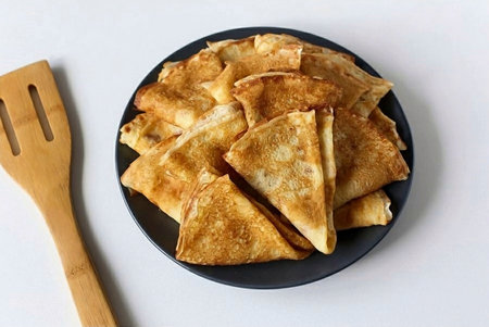 Top view of a dish with pancakes or pancakes without filling. Healthy eating concept.