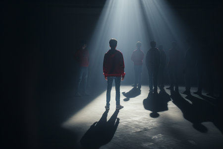 An AI generated illustration of a group of silhouetted people figures standing in crowd