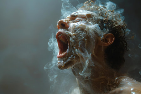 Featuring a man yelling with smoke of his mouth, high quality, high resolution