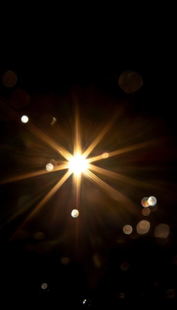 Golden Lens Flare Creating a Magical Atmosphere with Warm Light Effects on a Dark Background
