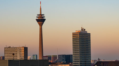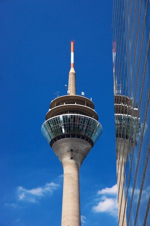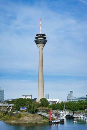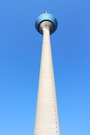 Dusseldorf, Germany - outdoor view of television and telecommunications tower, Rheinturm.