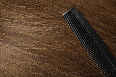Comb with beautiful brown hair, closeup view