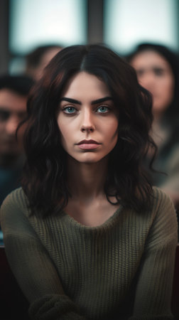attractive woman on plein background shot in studio with soft lights with an interesting expression and dramatic lighting Black And White, b&w