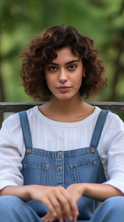 Close-up portrait of curly Caucasian woman with multi-colored hair. Model for hairstyles