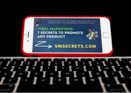 MOSCOW, RUSSIA - AUGUST 1, 2019: Smartphone on the laptop on the working desk.