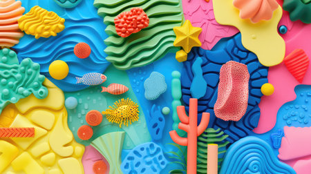 childrens fun hobby with plasticine texture shapes, created with generative ai