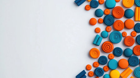 A lively assortment of colorful clay shapes lies on a bright background, inspiring imaginative play and artistic creation in a cheerful atmosphere.