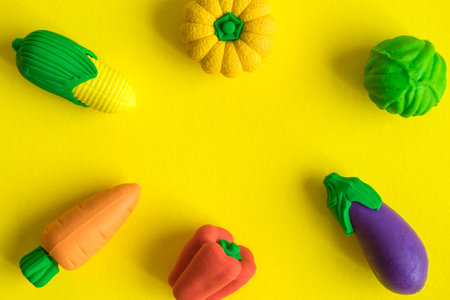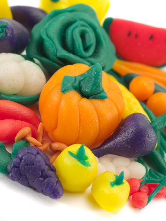 Vegetables made from plasticine. Isolated on white background.