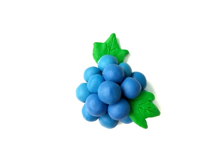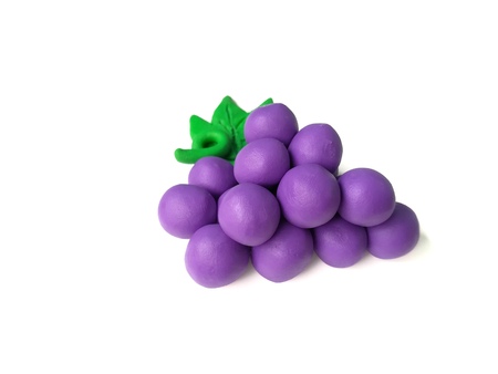 Clay plasticine made are beautiful fruit on white background, cute delicious purple grapes dough