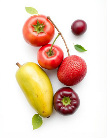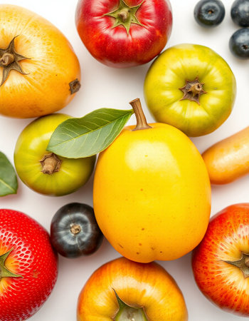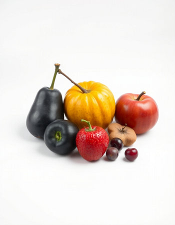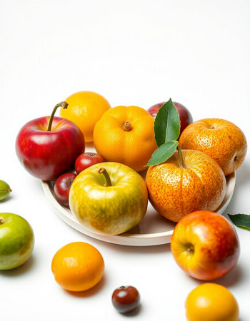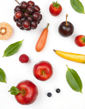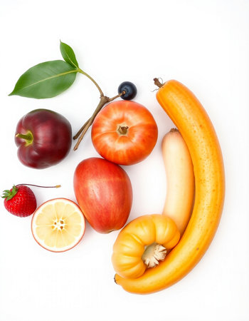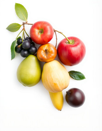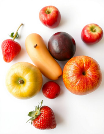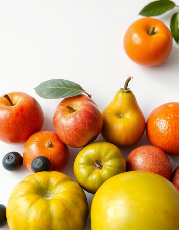 variety of fruits on a white background, studio light, vertical