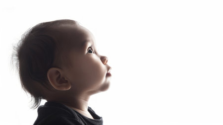 Profile of a baby looking up thoughtfully with a clean white background. Perfect for themes surrounding childhood, innocence, and the future