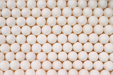 Background of chicken white eggs in a rows