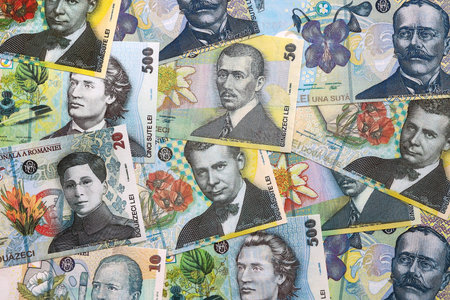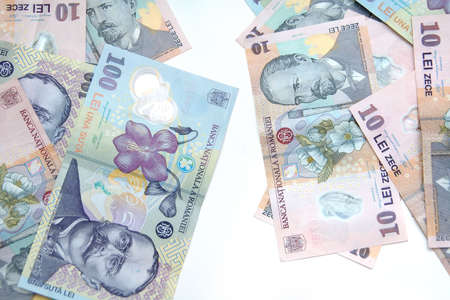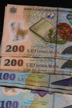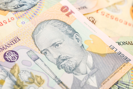 Money, currency of Romania, Romanian leu banknotes of various denominations. Romania, Romanian money as a financial background for your design.