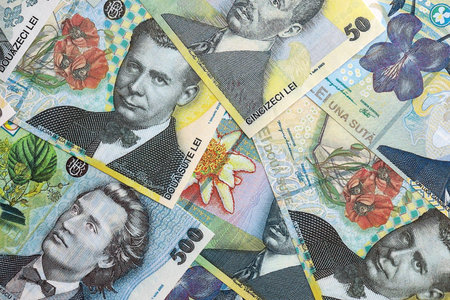 A composition of Romanian leu banknotes providing great options to be used for illustrating subjects as business, banking, media, presentations etc.