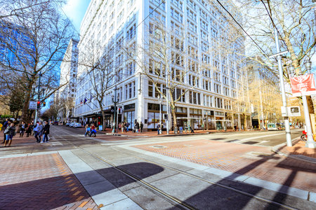 Portland, United States - Dec 20, 2017 : Street view of Pioneer district in downtown Portland