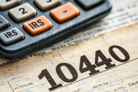 Numbers and forms come to life as a calculator rests on a tax document featuring the code 10440. This snapshot captures the essence of tax preparation during the season.