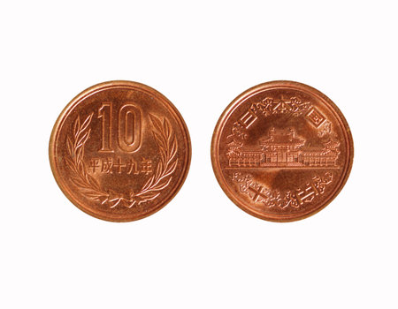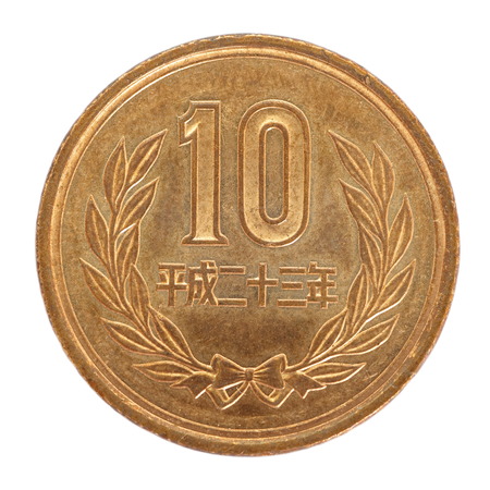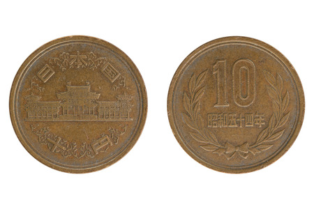 Japanese 10 yens coin isolated on white