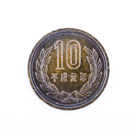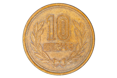 close - up 10 japanese yen coin isolated on white background