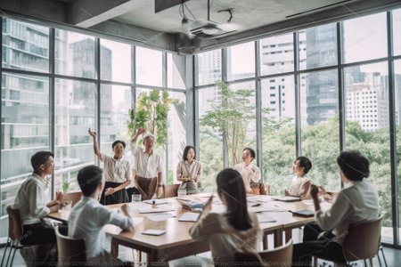 Real success Modern young business people clapping and smiling while working behind the glass wall in the board room : Generative AI