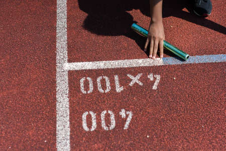 Student prepare to leaving the starting for relay race at school sports day. School sports day concept.
