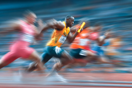 Vivid Scene of Male Athletes Speeding in a Sprint Race with Powerful Motion Blur Effect.