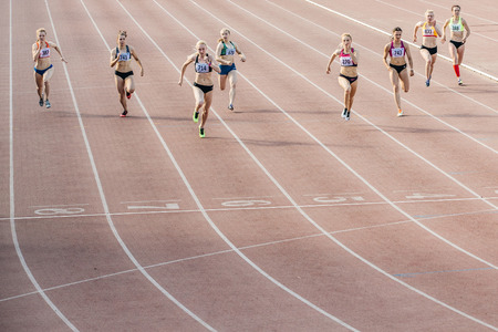 group women runners running race sprint track and field competition
