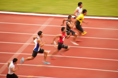 PHATUMTANI,THAILAND – SEPTEMBER,6 Groups of player action of 100 m in Thailand Open Athletic Championships 2013 at Thammashat University stadium on September 6,2013 in Phatumtani city ,Middle of Thailand