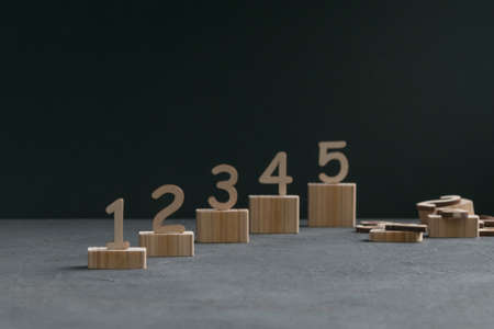 Wooden numbers on cubes on a decorative dark background