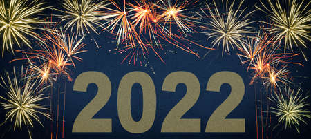 Silvester 2022 New year New Year's Eve Party background banner - firework fireworks on dark blue night sky texture