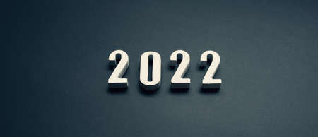 Beginning and celebration concepts with 2022 number in dark color background.minimal design.banner design