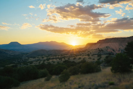 Golden sunrise over Bandelier National Monument, NM