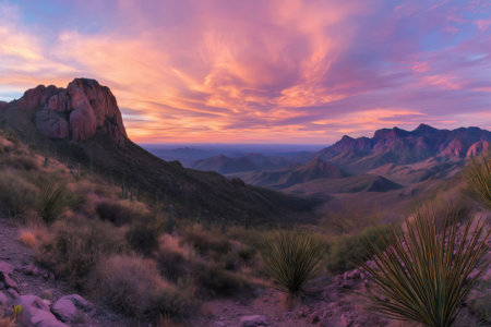 Big Bend National Park in Texas offers breathtaking sunrise views, featuring colorful clouds, rugged mountains, and desert landscapes