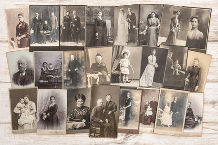 old letters and antique family photos parents, grandfather; grandmother; children nostalgic vintage pictures from ca 1900